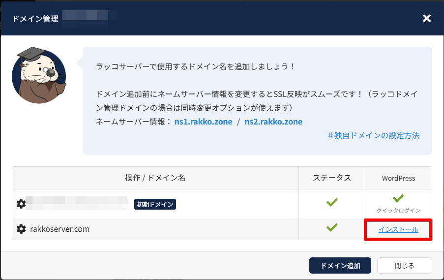 初期ドメイン配下のサブドメインは管理上わかりやすい名前がおすすめです!(例:wp_template.xxx.rakkoserver.net)