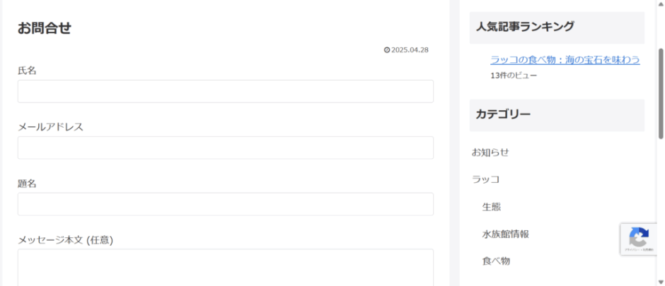これで、サイトの訪問者がお問い合わせフォームにアクセスできるようになります。
